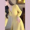 Francuski-, zimowy wyszczuplający dzianinowy sukienka maxi z dekoltem V z warstwą bazową plisowana sukienka dla kobiet