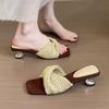 Kwadratowa głowa plecione słowo na wysokim obcasie fajne kapcie temperament retro styl wakacyjny sandały damskie