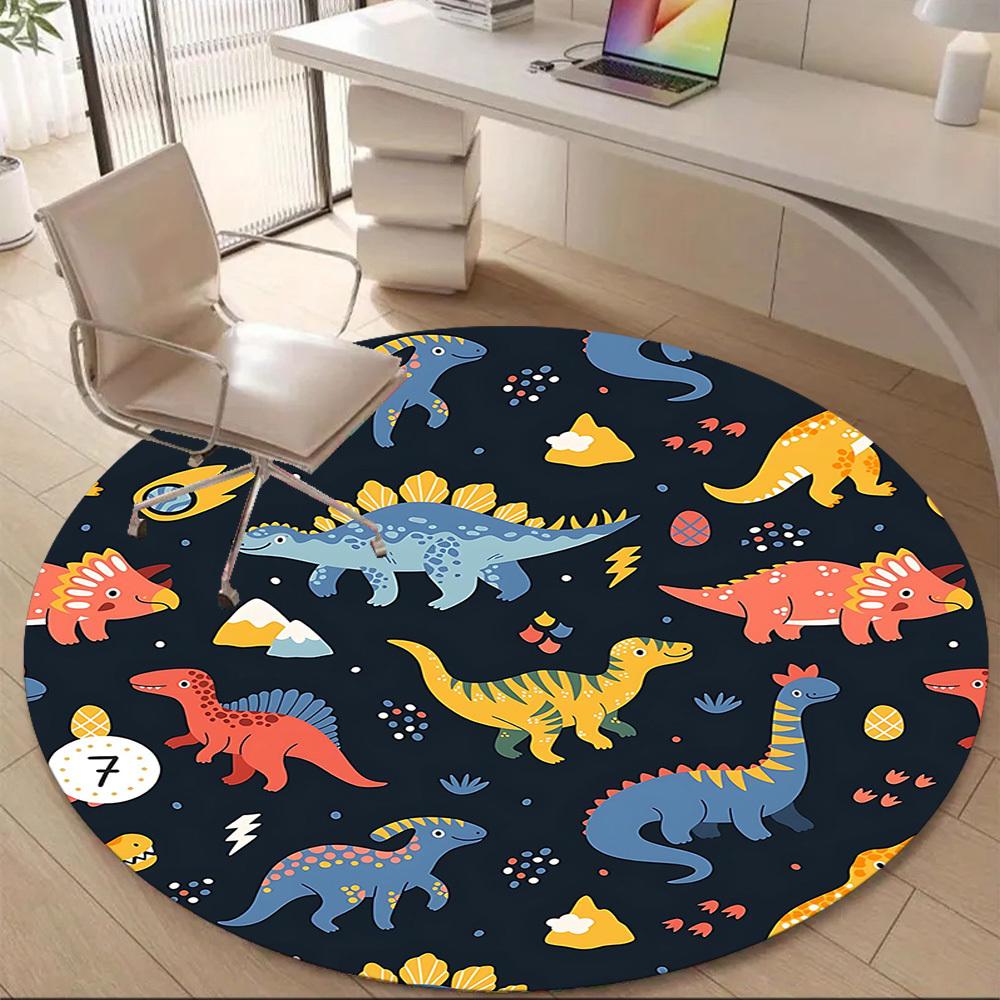 1PC Dino World Pattern Office Round Area Rug, Mat Suitable For Office, Under Office Chairs Bedroom Living Room Home Decor, Room Deco