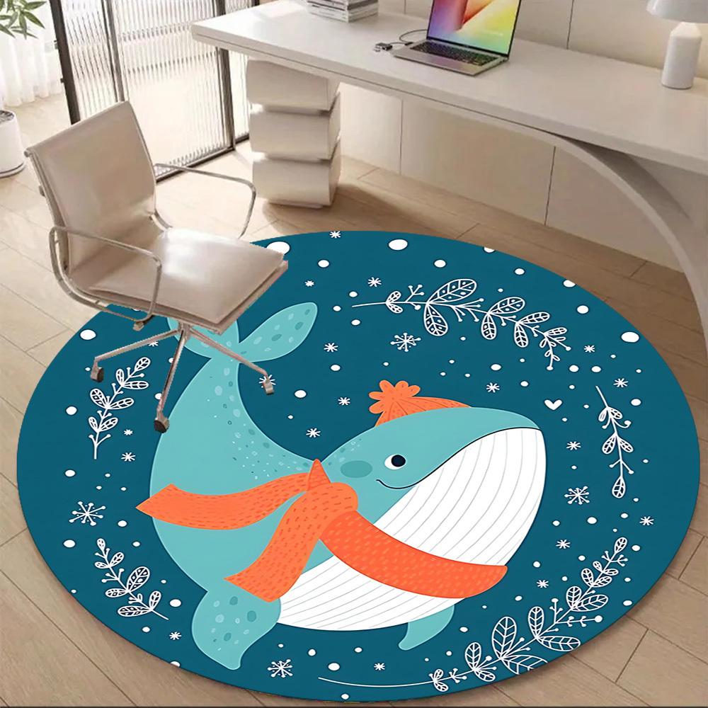 1 szt. Okrągły dywanik zimowy z wielorybem, do biura, pod krzesła biurowe, do sypialni, salonu, wystrój domu, dekoracja pokoju