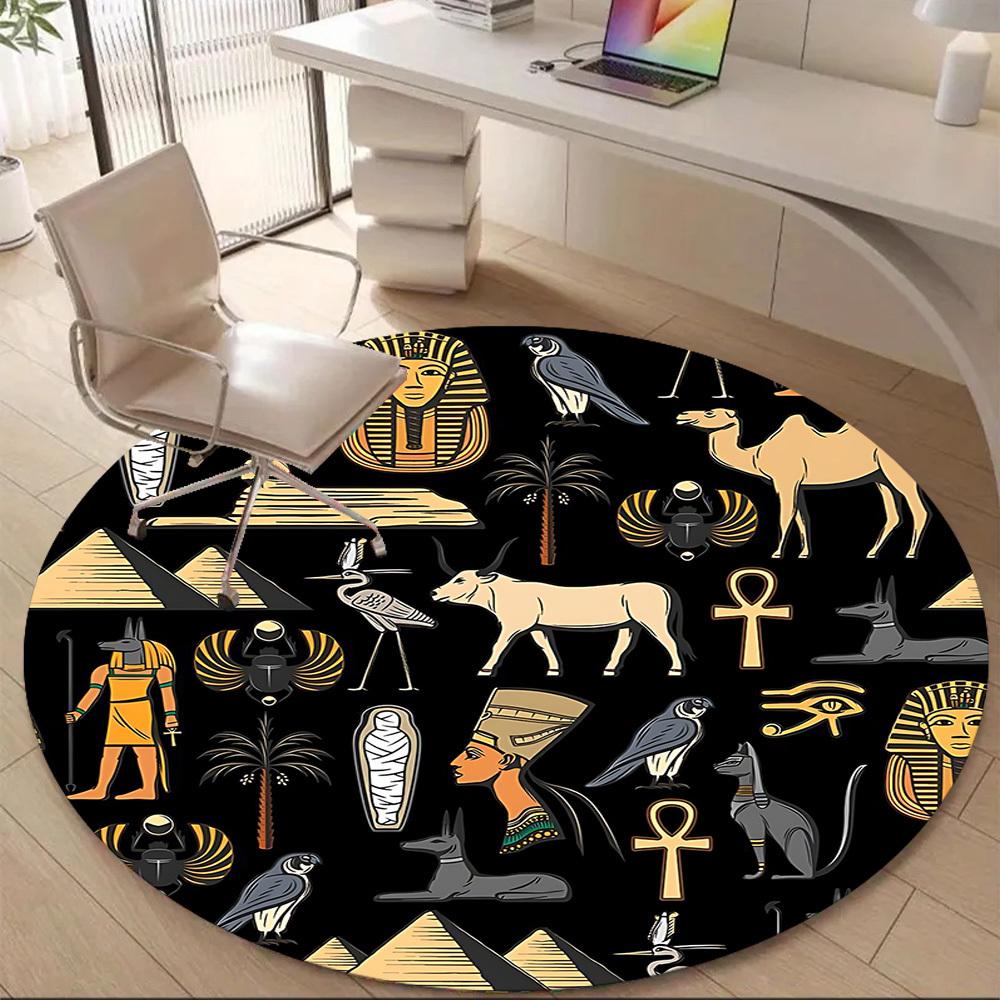 1pc Egyptian Symbols Office Round Area Rug, Under Office Chairs Bedroom Living Room Home Decor, Room Deco
