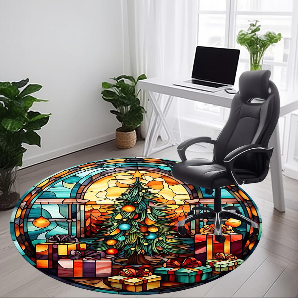 1pc Christmas StainedGlass Office Round Area Rug, Under Office Chairs Bedroom Living Room Home Decor, Room Deco