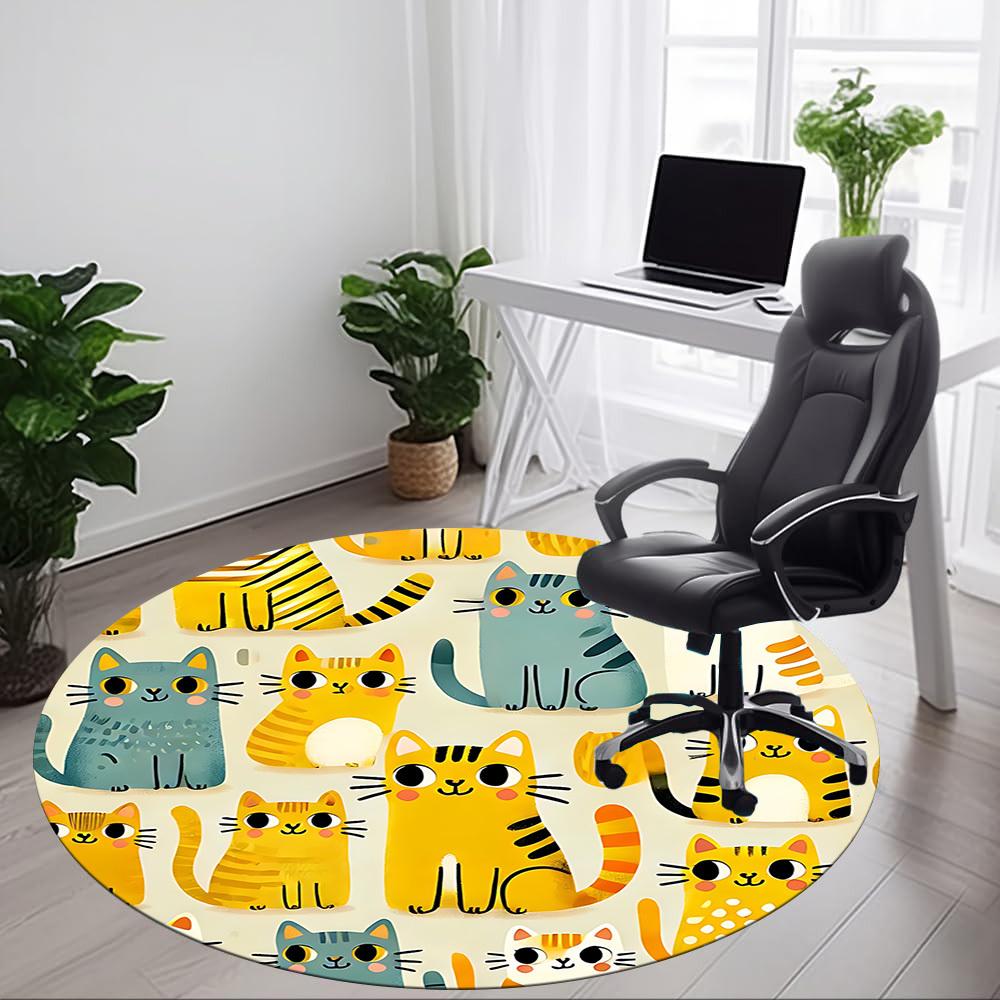 1 szt. Okrągły dywanik biurowy z motywem kota, Mata wewnętrzna odpowiednia do biura, Pod krzesła biurowe, Sypialnia, Salon, Wystrój domu, Dekoracja pokoju
