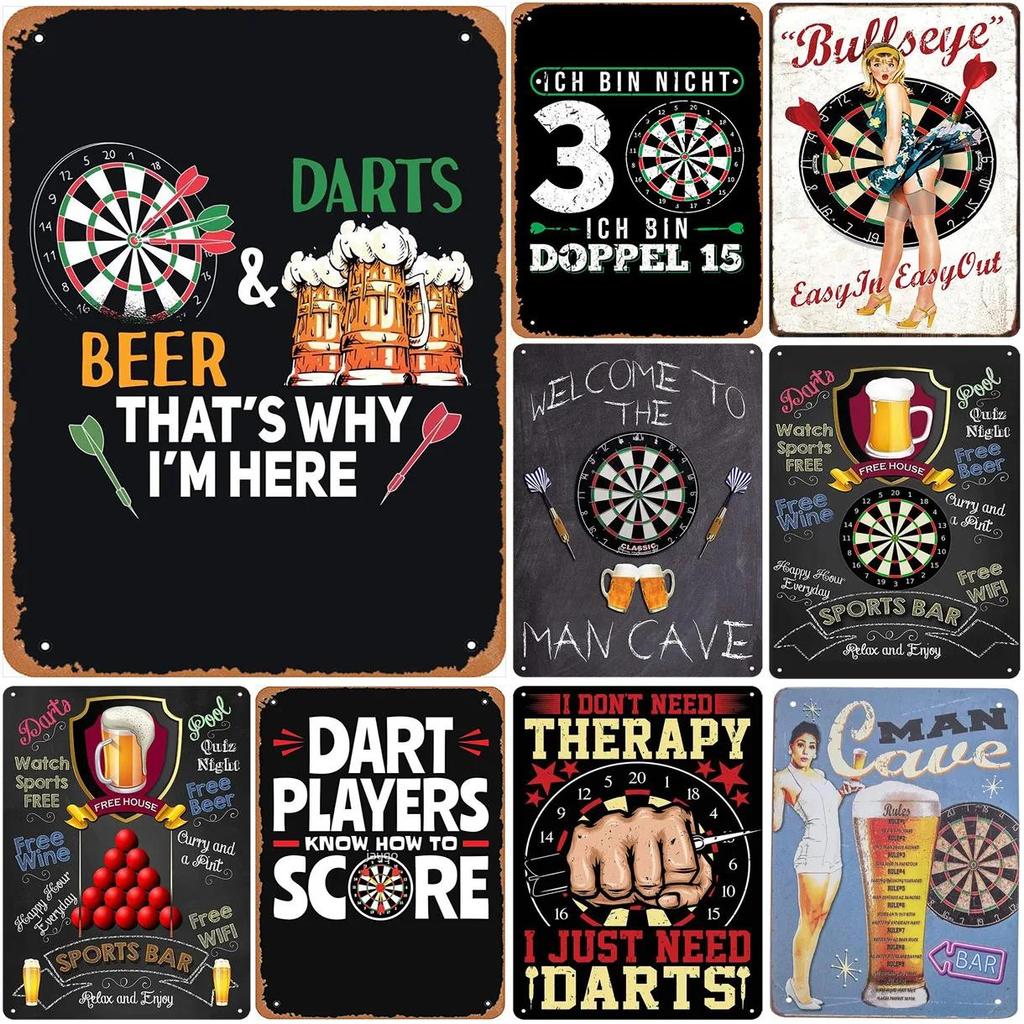 Vintage Rzutki Piwo Metalowy Znak Blaszany Retro Sztuka Ścienna do Baru Sportowego Man Cave Pokoju Gier Dekoracja Klubu Kawiarni Żelazny Plakat Tabliczka