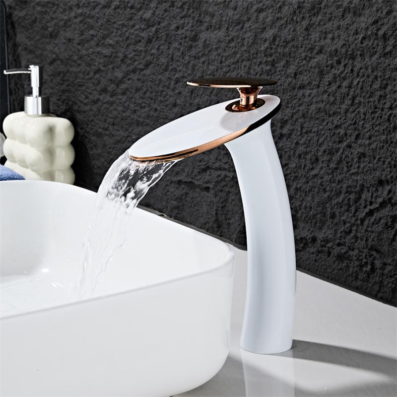 Bateria Łazienkowa Różowe Złoto Mosiężna Bateria Umywalkowa Bateria do Zlewu Kran Wodospad Zimna i Ciepła Woda Kran do Umywalki Montowany na Blacie Kran do Umywalki