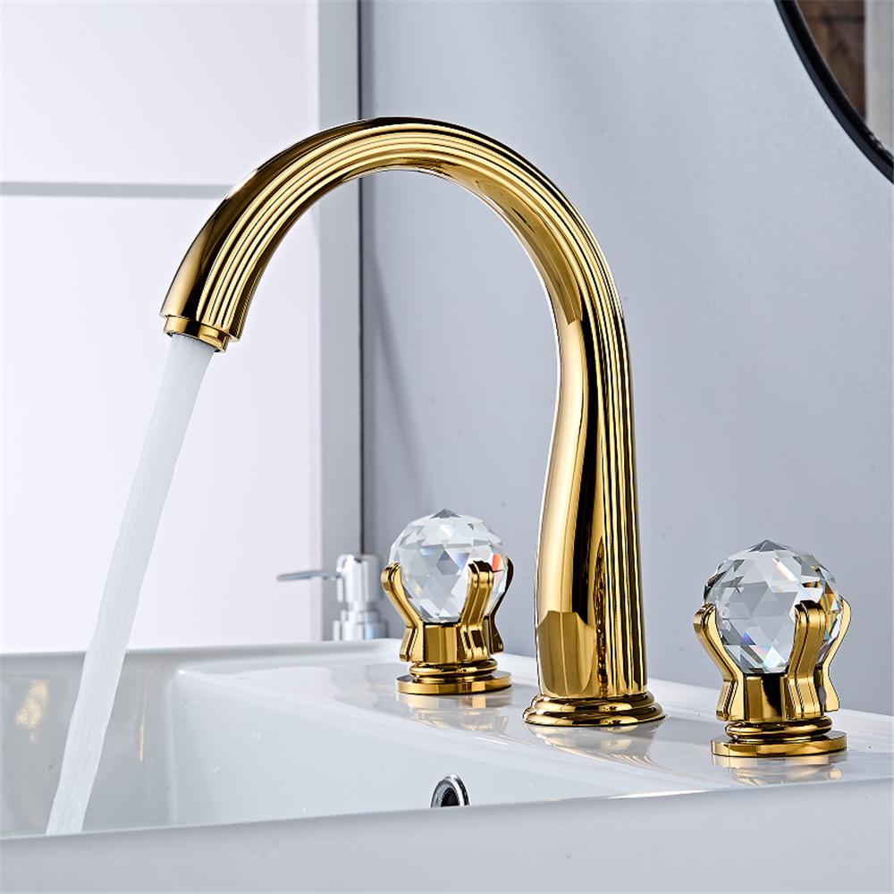 Brass Crystal Bathroom faucet widespread Gold Basin faucet Lavotory Tap luxury Basin Mixer Hot And Cold shower room sink Faucet