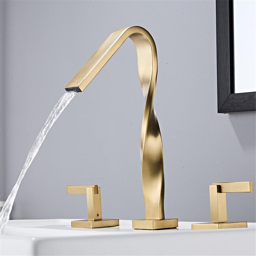 Brushed Gold Bathroom Faucet Gold Basin Sink Faucet Mixer Tap Widespread Black Wash basin Faucet 3 Hole Chrome Lavotory Faucet