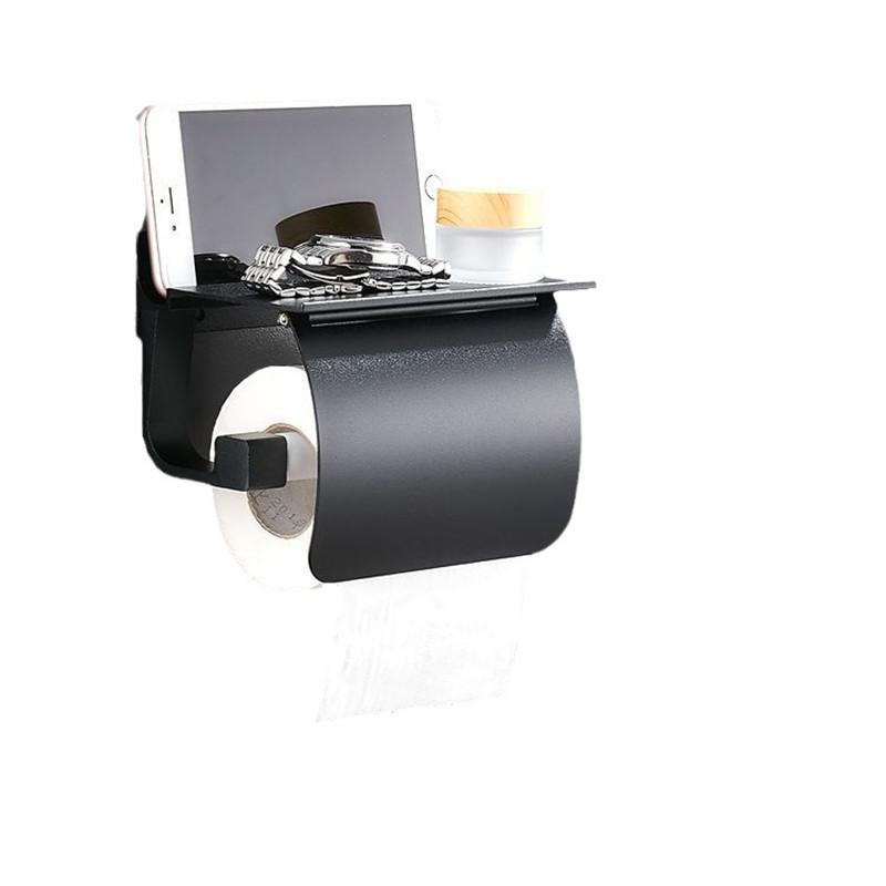 Tuqiu Black Toilet Paper Holder Silver Tissue Paper Holder Aluminium Paper Roll Holder With Phone Storage Shelf