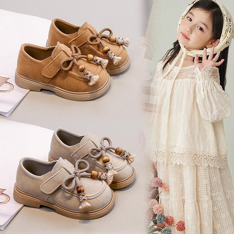 Girls' Tassel Birkenstock Shoes - 2026 Spring/Autumn Casual Leather Moccasins for Little Girls, New Chinese-Style Versatile Footwear.