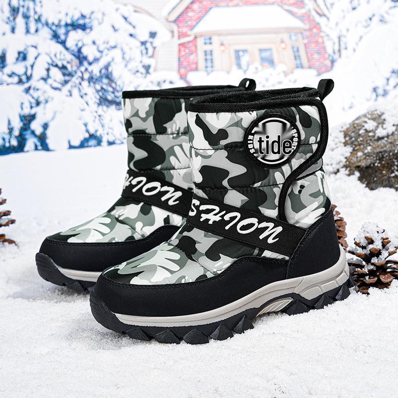 Introducing the perfect winter footwear for active young adventurers, these snow boots are designed to keep medium and large boys comfortable and secure in cold weather. Engineered with a non-slip sole, they ensure stability on icy and snowy terrain, making them ideal for outdoor sports and play. The boots are lined with soft velvet, providing exceptional warmth and coziness throughout the day. Durable and wear-resistant, they are built to withstand rigorous activities and last through multiple seasons. The stylish camouflage design adds a trendy touch to any winter outfit, making them a must-have for sporty young boys.