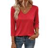 Damskie bluzki z rękawem 3/4, koszulki z dekoltem V, casualowe bluzki, podstawowe t-shirty