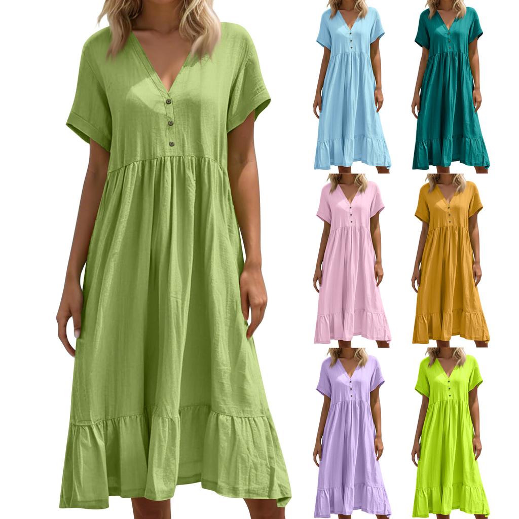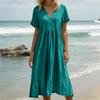 Women's Summer Loose V Neck Short Sleeve Dress, Elegant Dress
