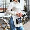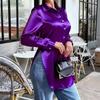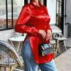 Modna damska, dopasowana, z nieregularnym dołem, długim rękawem, satynowa koszula