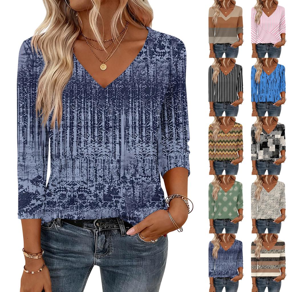 Damskie bluzki z rękawem 3/4, koszulki z dekoltem V, casualowe bluzki, podstawowe t-shirty
