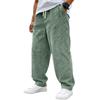 Męskie spodnie sztruksowe w stylu vintage z elastycznym pasem i sznurkiem, luźne, prosta nogawka, do noszenia na co dzień i na co dzień