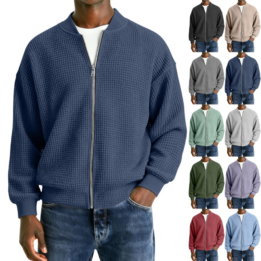 Men's Casual Zipper Stand Collar Long,Sleeve Lapel Jacket