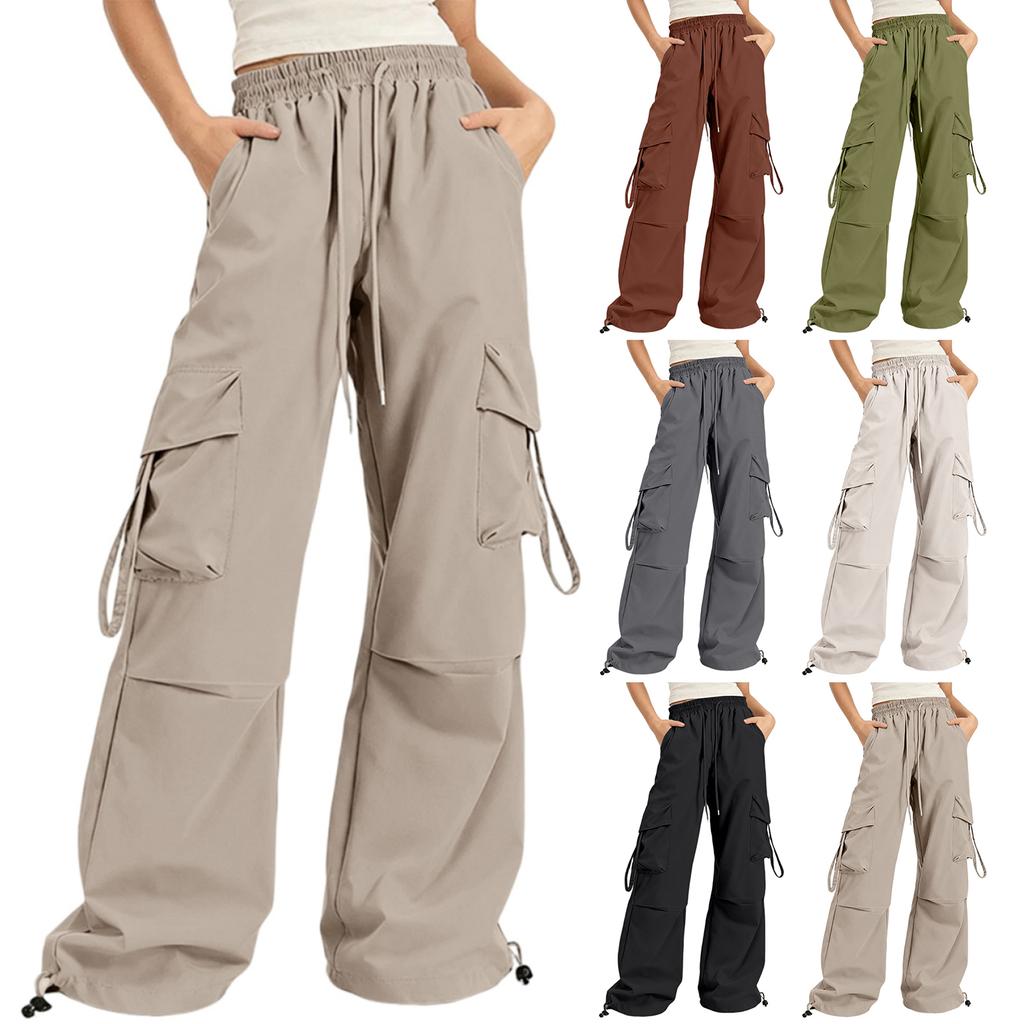 Damskie spodnie cargo z wieloma kieszeniami, luźne, codzienne, kolorowe spodnie