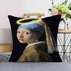 Funny Mona Lisa Wearing Pearls Girl Cushion Cover Pillowcase Upholstery Sofa Throw Pillow Home Decor Pillowcas