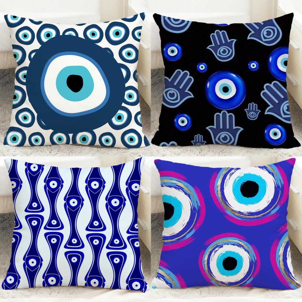 Art Evil Eye Symbol Cushion Cover Comfortable Reversible Pillow Cover Ideal for Car Sofa Bedroom & Beyond