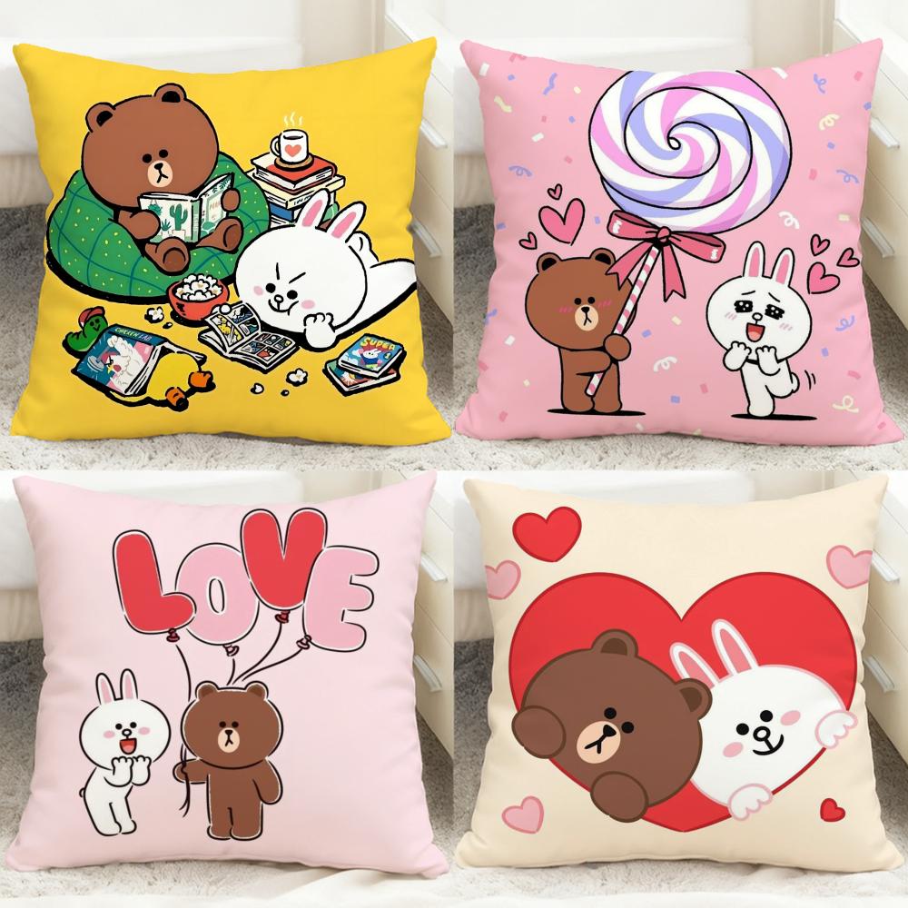 Line Town Brown Bear and C-Cony Cushion Cover Comfortable Reversible Pillow Cover Ideal for Car Sofa Bedroom & Beyond