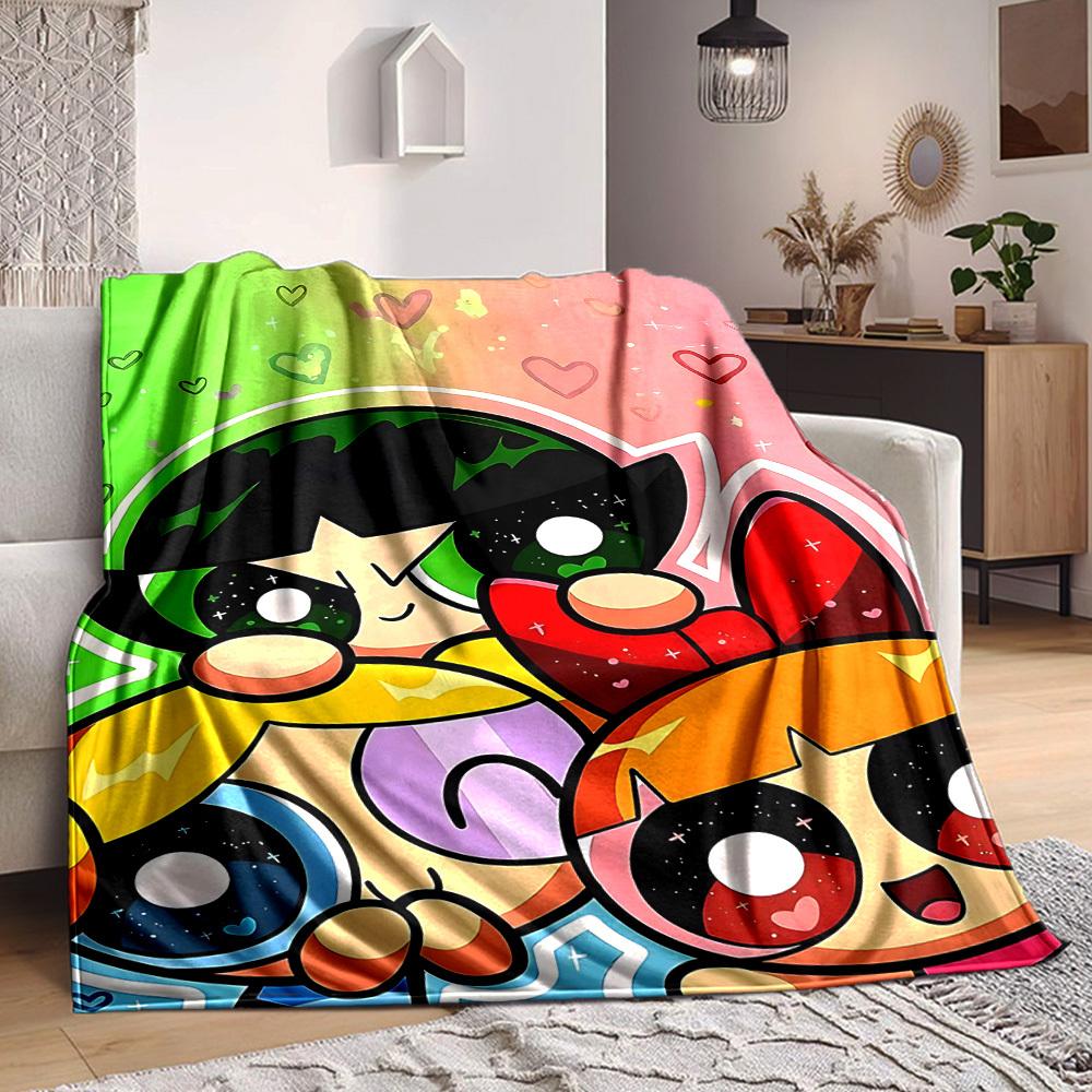 1pc Powerpuff Girls Flannel Throw Blanket Lightweight Soft Warm All Season Blanket for Sofa, Bed, Travel,L1028080