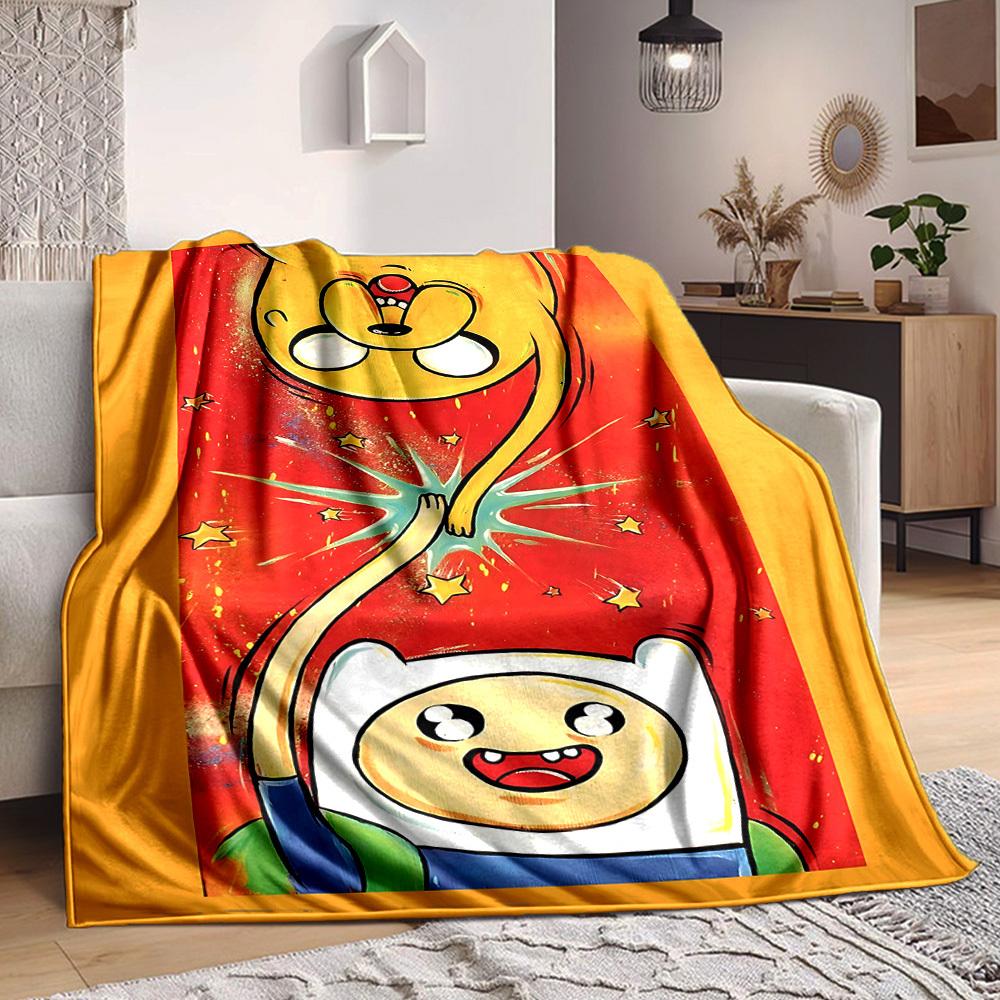 1pc Adventure Time Flannel Throw Blanket - Lightweight Soft Warm All-Season Blanket for Sofa, Bed, Travel, Camping L1029184