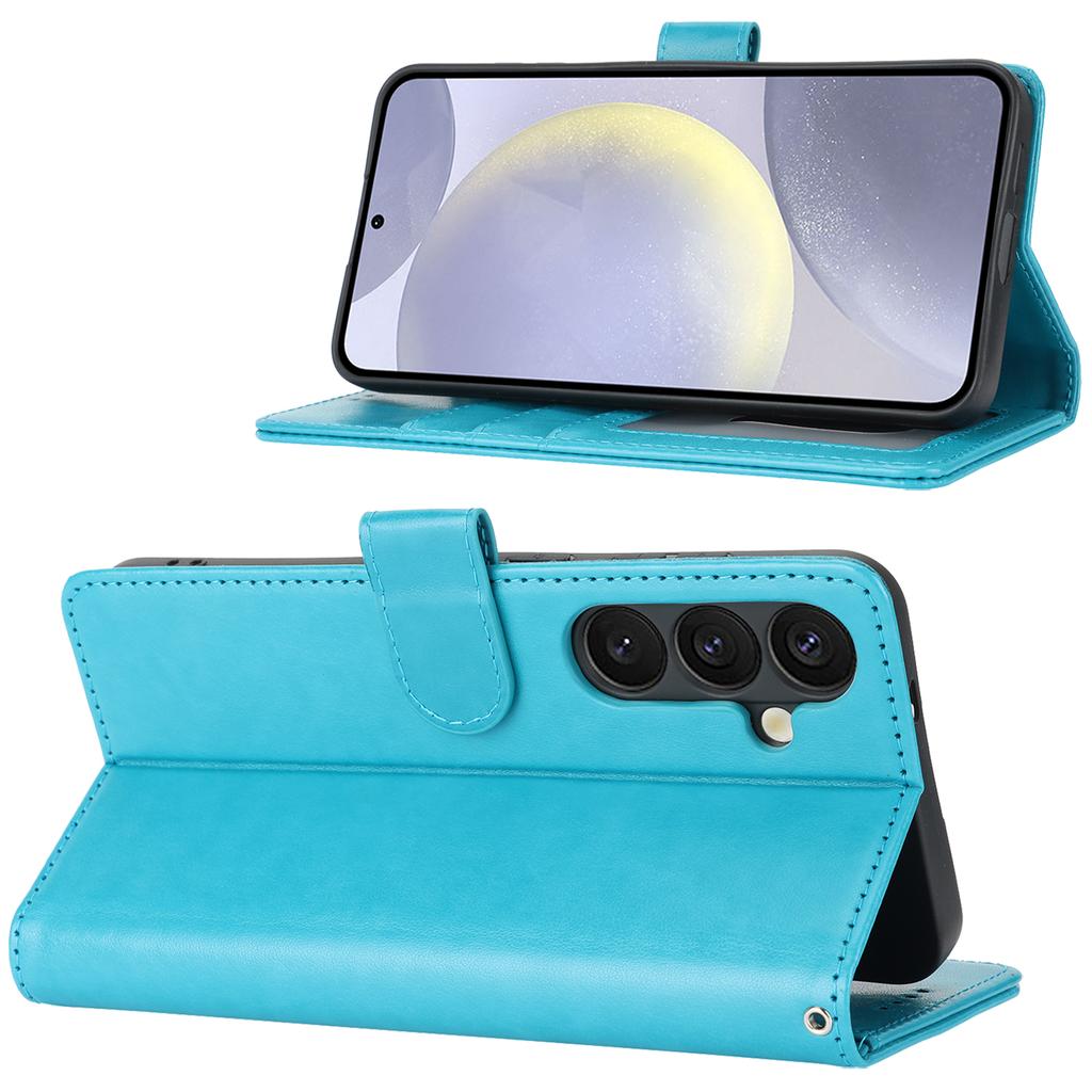 For Samsung Galaxy S24+ Stand Case Textured Leather Wallet Phone Cover with Strap