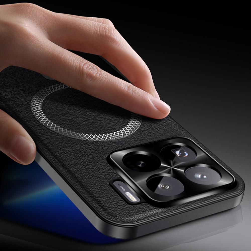For Xiaomi 15S Pro Magnetic Case PU TPU PC Phone Back Cover with Metal Lens Frame