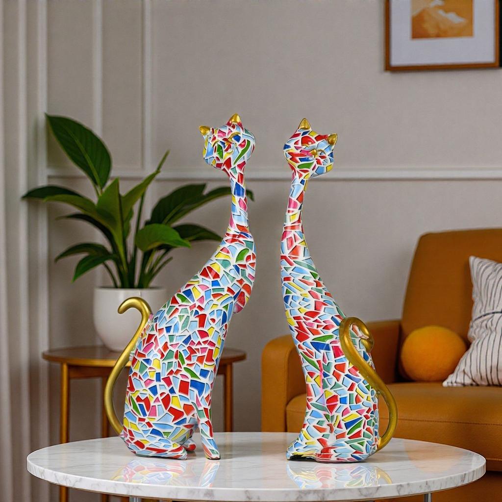 European creative abstract oil painting cat decoration festive gifts resin handicrafts bedroom desktop entrance cat ornament