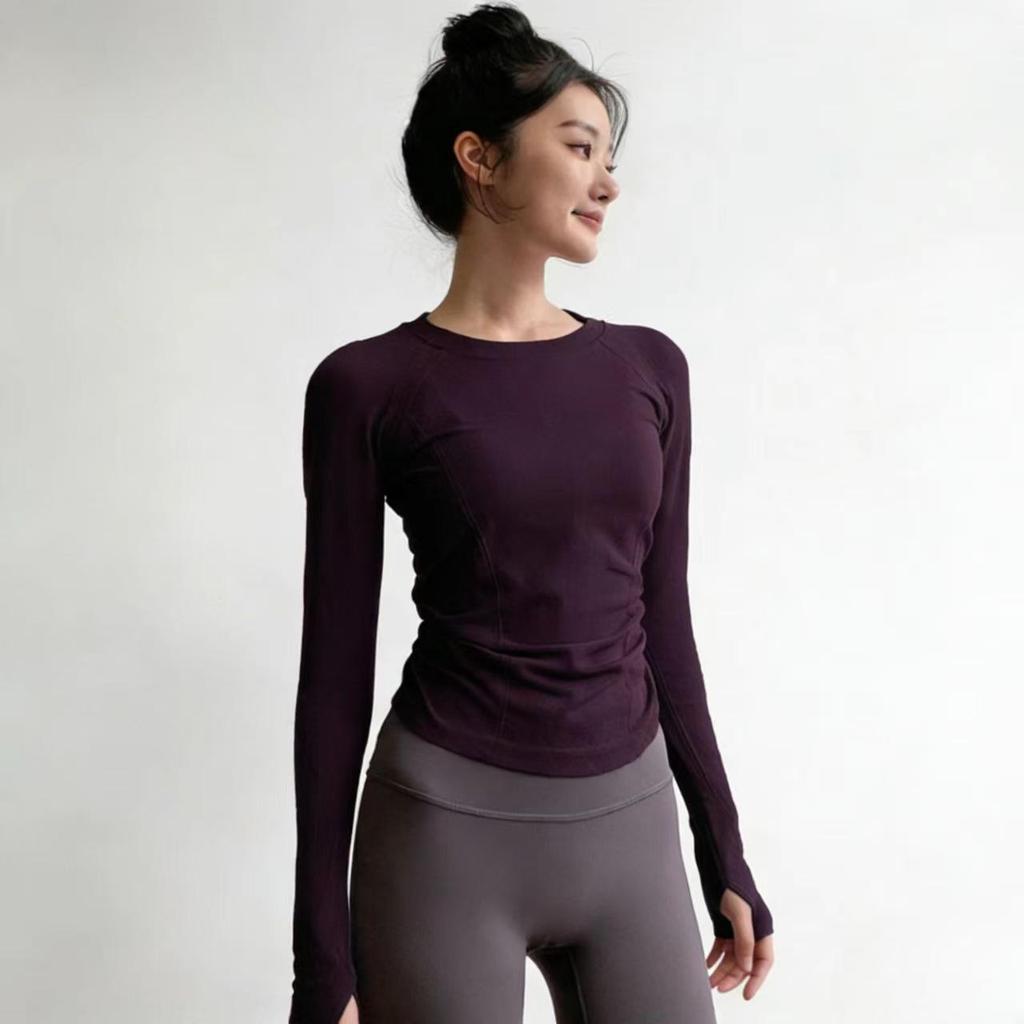 Damska dopasowana koszulka do jogi z długim rękawem, szybkoschnąca, z okrągłym dekoltem, idealna do biegania, pilatesu, treningu i fitnessu.