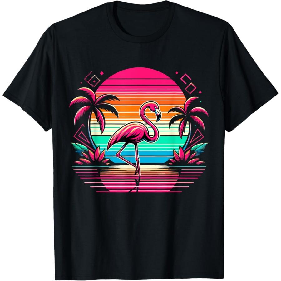 Różowy Flaming Plaża Letnie Klimaty Palmy Tropikalne Lato Koszulka