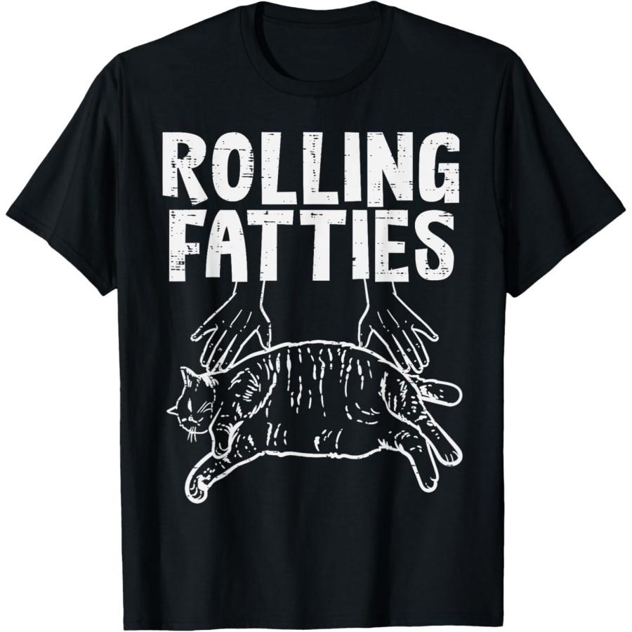 Rolling Cat Fatties T-Shirt Funny Graphic Tshirt for Men Women Cat Lovers