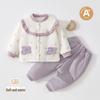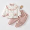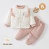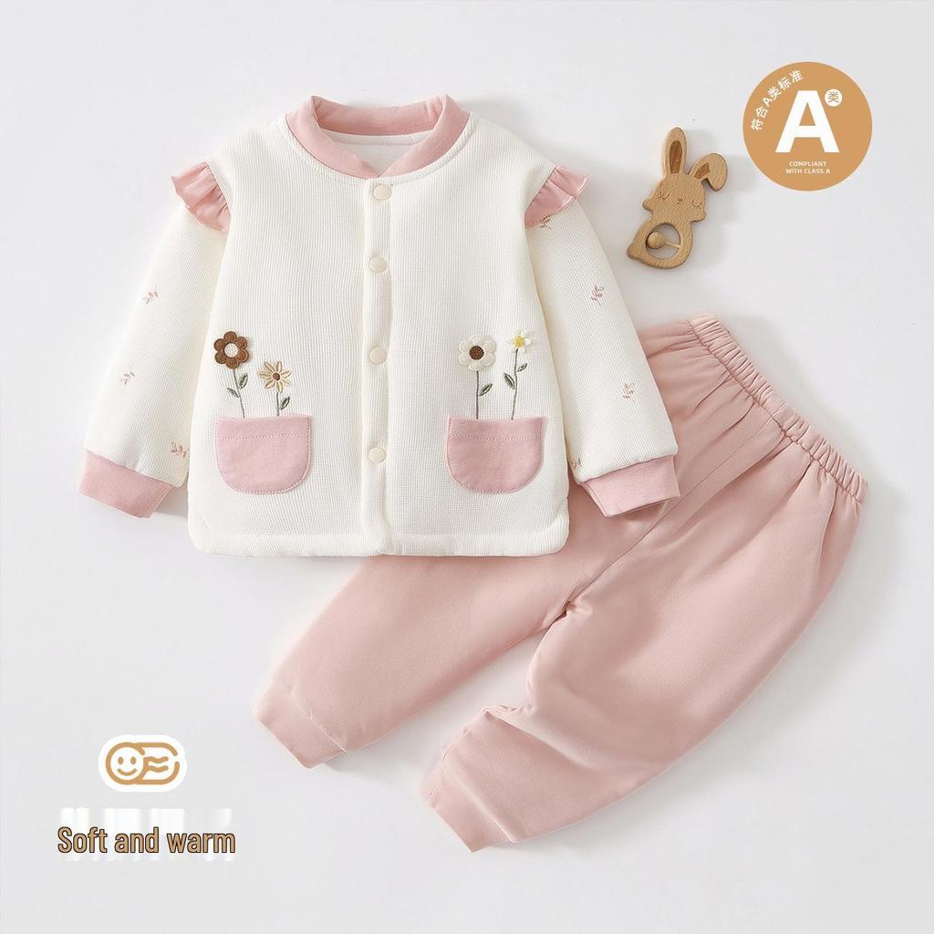 Ten uroczy i przytulny zestaw na wyjście jest specjalnie zaprojektowany dla małych dziewczynek na jesień i zimę.. Posiada lekkie wypełnienie bawełniane o wadze 80 g, zapewniające ciepło i komfort maluchowi podczas wyjść.. Wykonany z wysokiej jakości bawełny, zestaw jest delikatny dla wrażliwej skóry i idealny do zapewnienia maluchom ciepła.. Ten uroczy zestaw ubranek łączy ciepło z urokiem, co czyni go idealnym wyborem do garderoby Twojego noworodka na chłodniejsze miesiące.