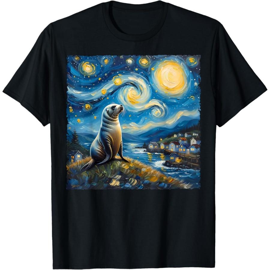 Van Gogh's Style Starry Night Inspired Seal Sea Lion Lovers T-Shirt