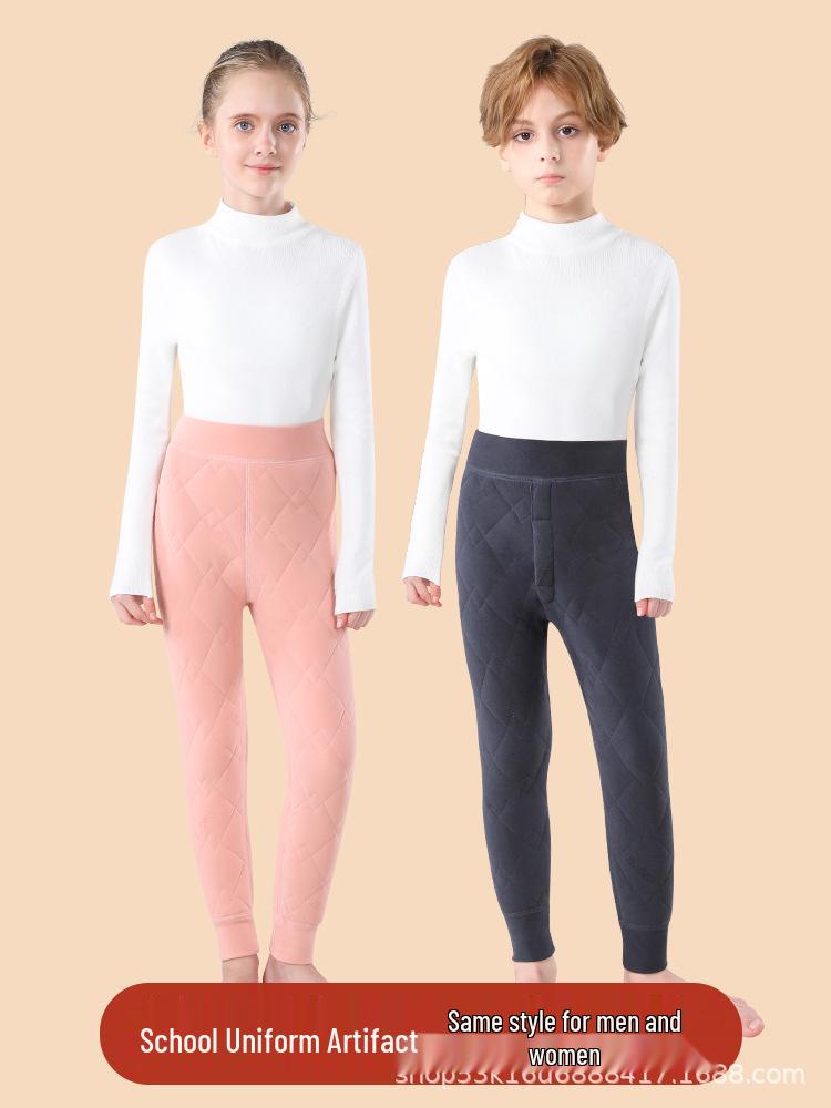 Girls' Winter Thermal Pants: Cotton Inner Layer, Fleece-Lined Wool, Perfect for School Uniforms, Sizes Small to Large.