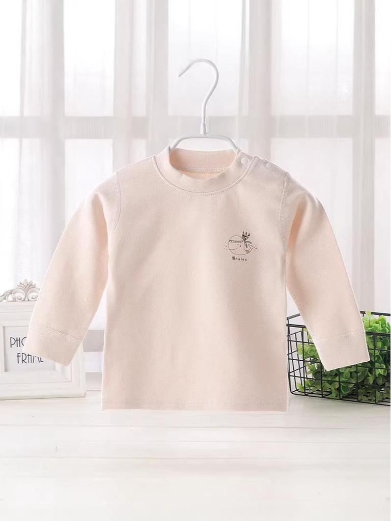 This delightful shoulder button top offers the perfect blend of comfort and style for your little ones during the spring and autumn seasons. Made from soft, high-quality cotton, it serves as a gentle base layer that protects tender skin. The round neck design adds a charming touch to this versatile piece, suitable for both boys and girls. With its long sleeves, it provides cozy coverage, keeping your child snug and warm, whether it's playtime or bedtime. Designed with practicality in mind, the shoulder buttons make dressing easy and fuss-free. Perfect for everyday wear, this top is a must-have addition to any child's wardrobe.