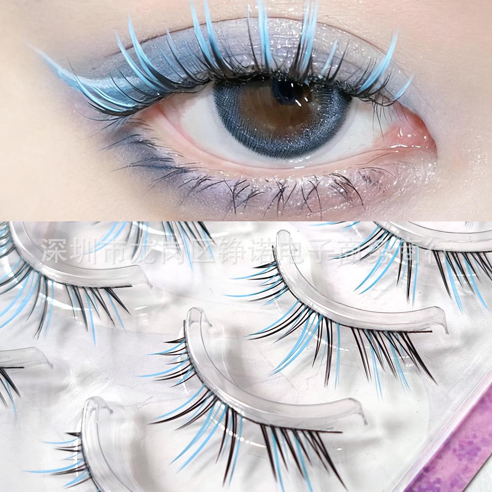 Set of Five Dreamy Ice Blue & Black False Eyelashes: Natural Flow, Realistic, One-Piece Fairy Cosplay Lashes