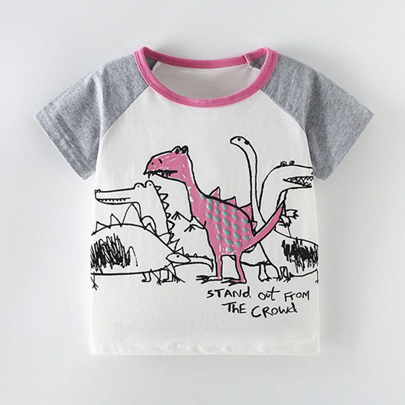 Boys' Dinosaur Pure Cotton Short-Sleeve T-Shirt, Summer Children's Top, Small and Medium-Sized Children's Half-Sleeve Base Shirt, Thin T-Shirt Size 8
