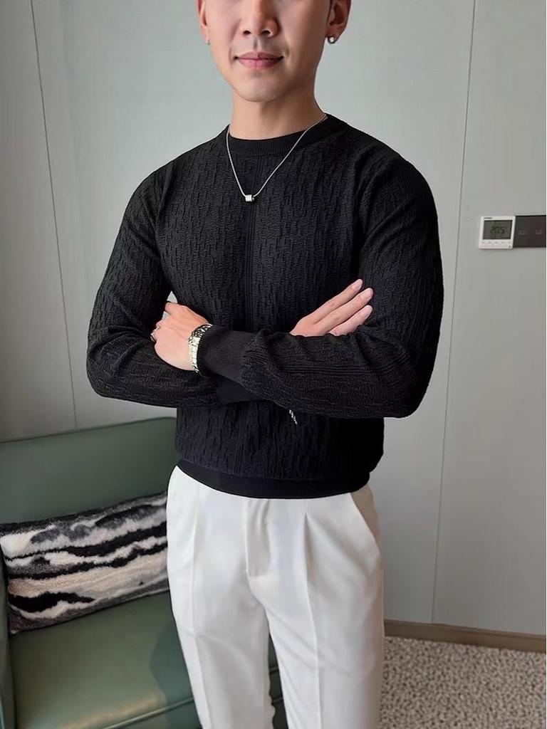 Ten stylowy dzianinowy produkt z jesienno-zimowej kolekcji w stylu koreańskim ma nowoczesny, dopasowany krój, który podkreśla sylwetkę.. Wykonany z wysokiej jakości poliestru, oferuje wygodną, standardową grubość, idealną na chłodniejsze pory roku.. Długie rękawy zapewniają ciepło, podczas gdy okrągły dekolt dodaje klasycznego charakteru projektowi.. Wzór żakardowy podnosi ogólną estetykę, czyniąc go doskonałym wyborem zarówno na codzienne wyjścia, jak i na bardziej formalne okazje.