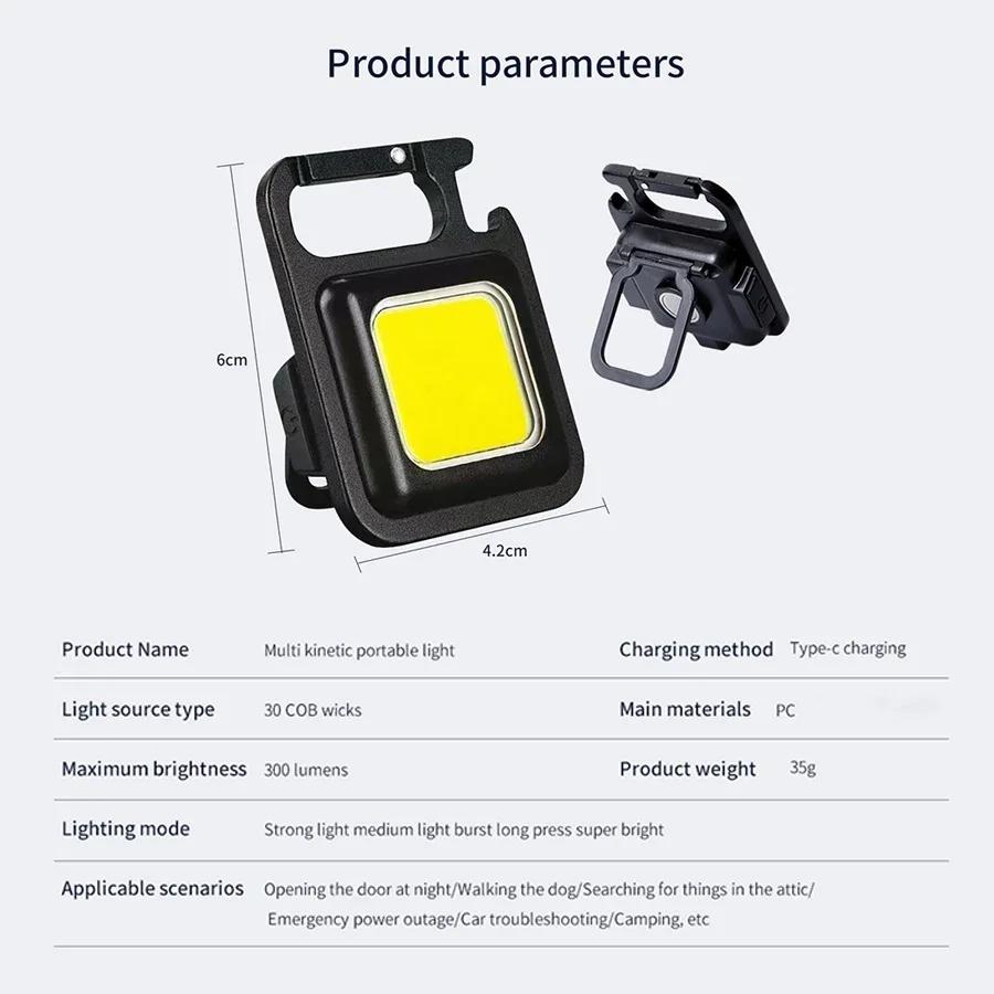 Multifunction COB Portable Lanterns Mini LED Flashlight Keychain Light USB Rechargeable Outdoor Camping Emergency Work Light