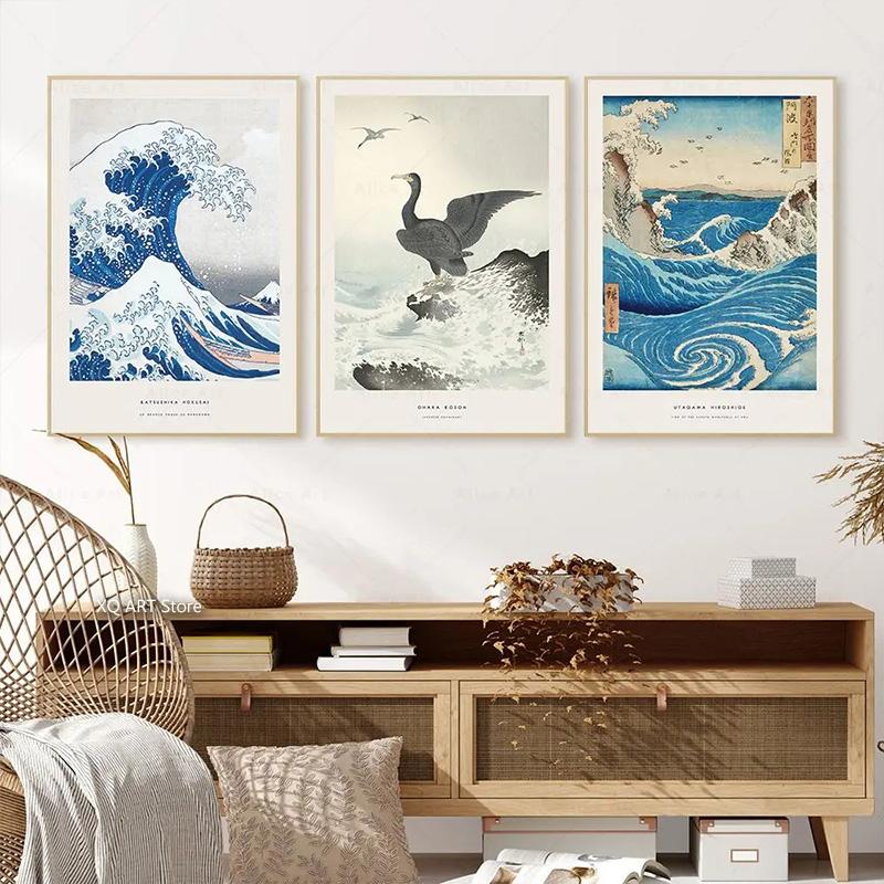Nordic Hokusai Ohara Koson Japan Style Wave Wall Art Canvas Painting Plakaty I Wydruki Obrazy Ścienne Do Salonu Wystrój Domu