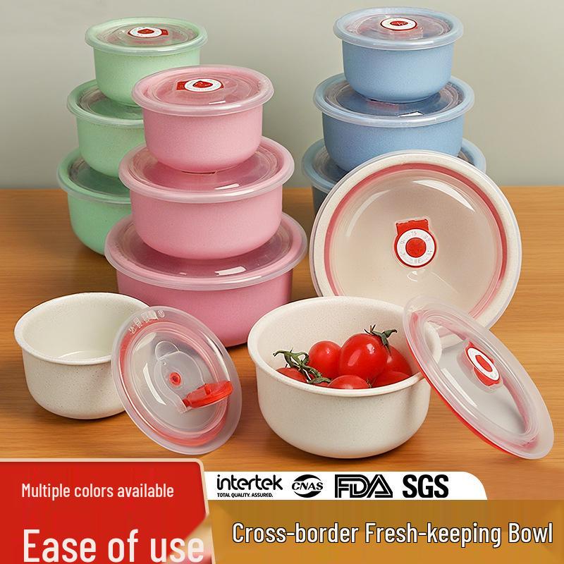 Wheat Straw Kitchen Bowl Set with Anti-Fall, Fresh-Keeping Features and Transparent Lids
