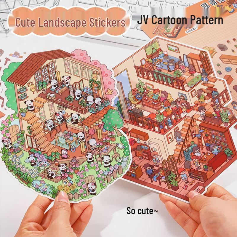 Stereoscopic 3D DIY Cartoon Scene Sticker: Large, Cute, High-Difficulty, 3-Layer Decompression Journal Sticker