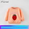 Girls' Sweatshirt, Spring and Autumn Style, Orange Strawberry Pullover, Children's Long-Sleeved Round-Neck Pure Cotton Base Shirt, Stylish