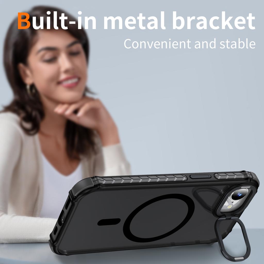 For iPhone 16e Case with Lens Kickstand Matte Phone Back Cover Compatible with MagSafe