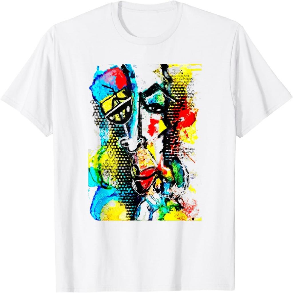 Abstrakcyjny Śmieszny Malunek Twarzy Czerwony Niebieski Graffiti Pop Art Komiksowy T-Shirt
