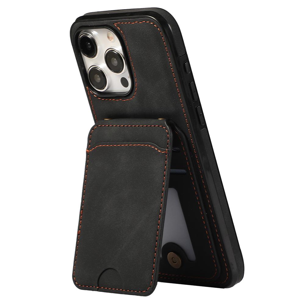 For iPhone 15 Pro Case Card Holder Kickstand Leather + TPU Phone Cover with Shoulder Strap
