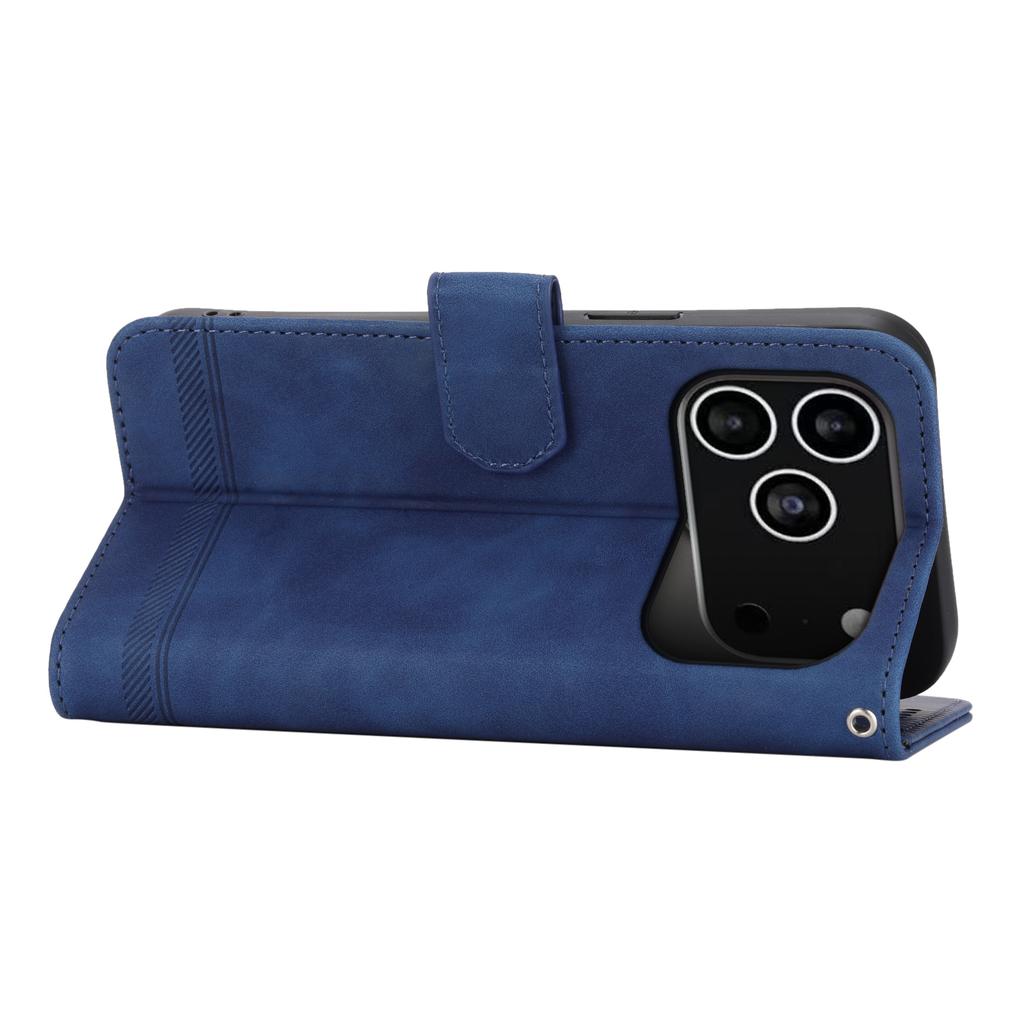 DIERFENG DF-03 For iPhone 17 Pro Case Lines Imprint Wallet Leather Phone Cover with Wrist Strap