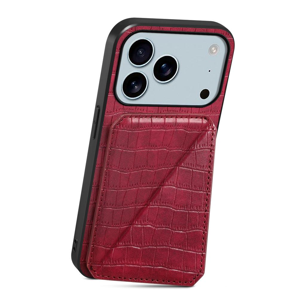 For iPhone 17 Pro Case with Card Holder Leather + PC + TPU Crocodile Textured Back Cover