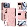 Dla iPhone 17 Pro Max Skórzane Etui Motyl Kwiatowy Wzór Portfel na Zamek Pokrowiec z Podstawką z Paskiem na Nadgarstek